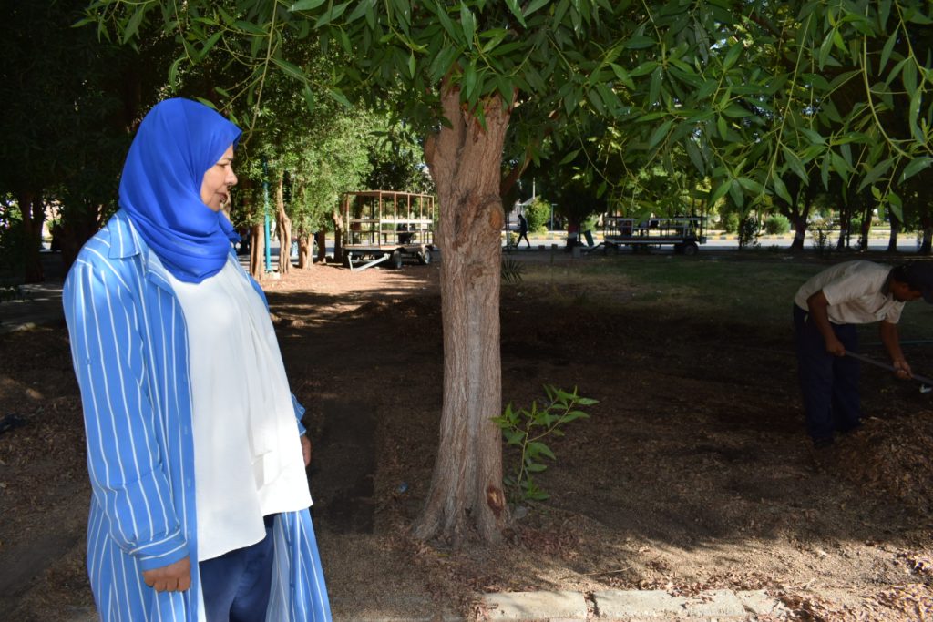 قامت السيدة أ/هند عثمان – أمين الكلية بمتابعة أعمال تنظيف أوراق الأشجار المتساقطة بمحيط الكلية