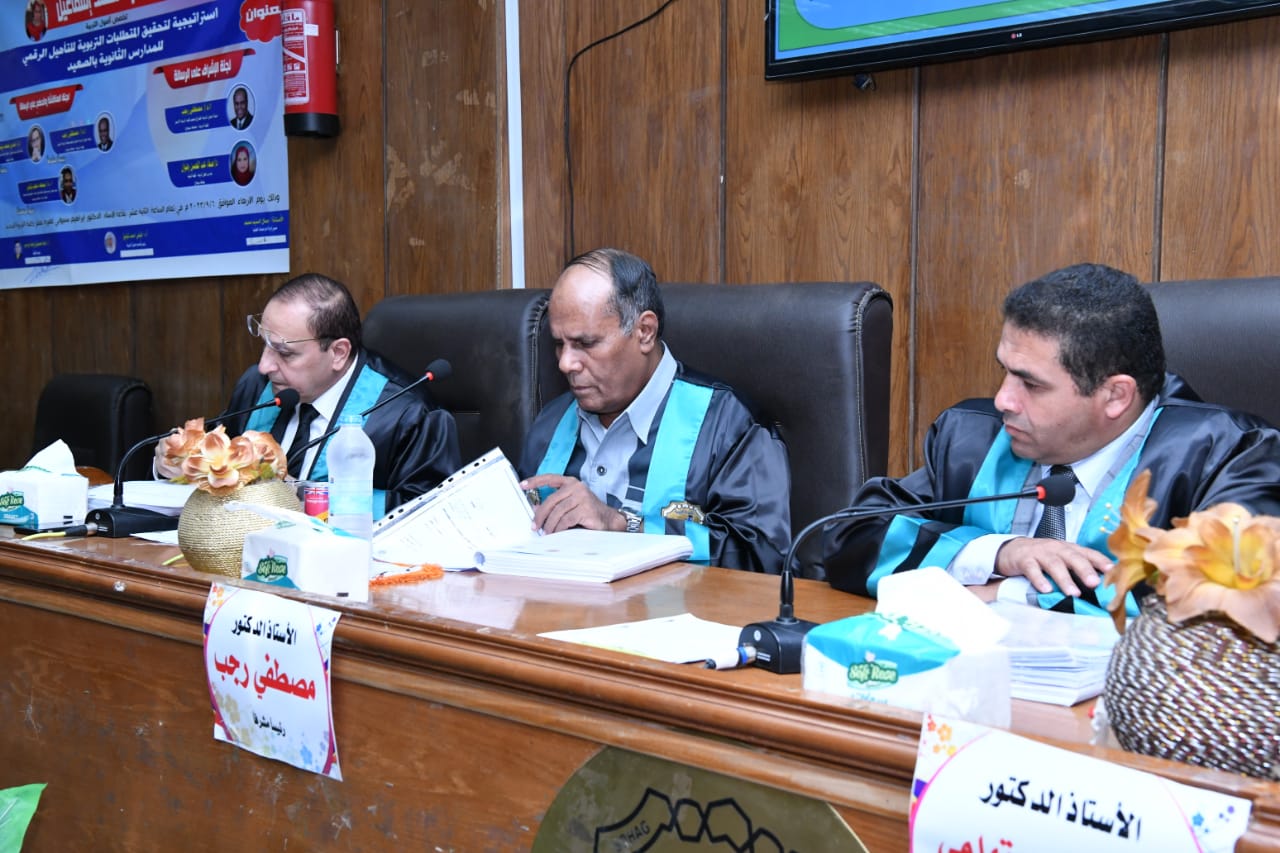 تحت عنوان: “استراتيجية لتحقيق المتطلبات التربوية للتأهيل الرقمي للمدارس الثانوية بالصعيد”
