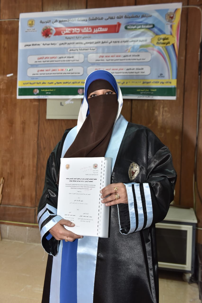 مناقشة رسالة الماجستير في التربية المقدمة من الباحثة/ سهير خلف جاد علي تخصص (إدارة تعليمية)