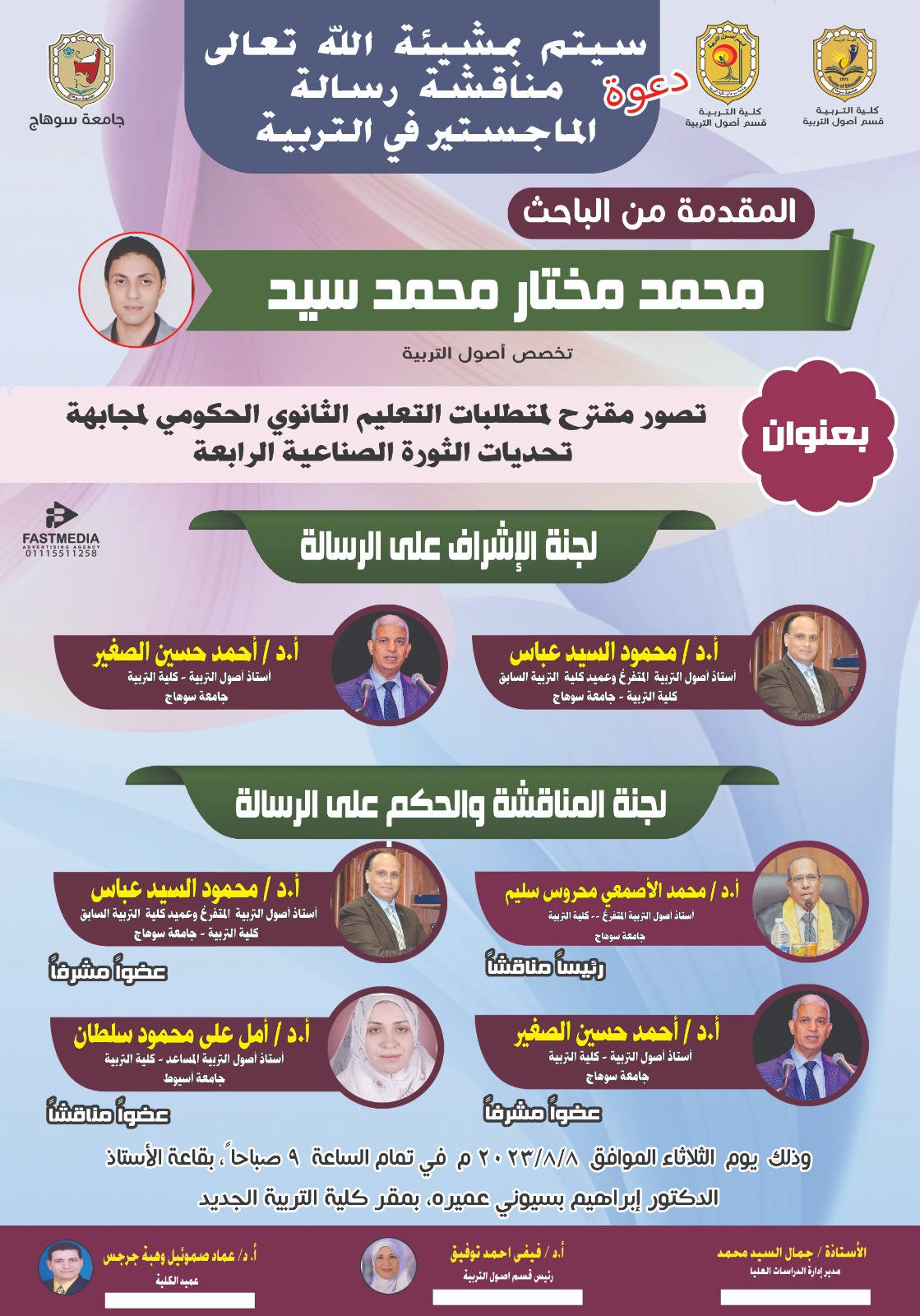 الرئيسية » مناقشة رسالة الماجستير في التربية تخصص أصول التربيةمناقشة رسالة الماجستير في التربية تخصص أصول التربيةبواسطة Hoda27 أغسطس, 2023مناقشة رسالة الماجستير في التربية تخصص أصول التربية للباحث/ محمد مختار محمد سيد