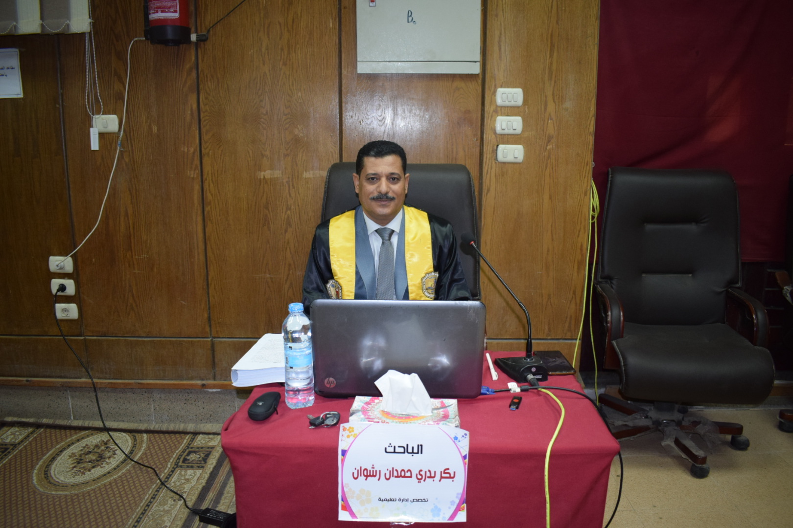 مناقشة رسالة ماجستير بقسم التربية المقارنة والإدارة التعليمية للباحث/ بكر بدري حمدان
