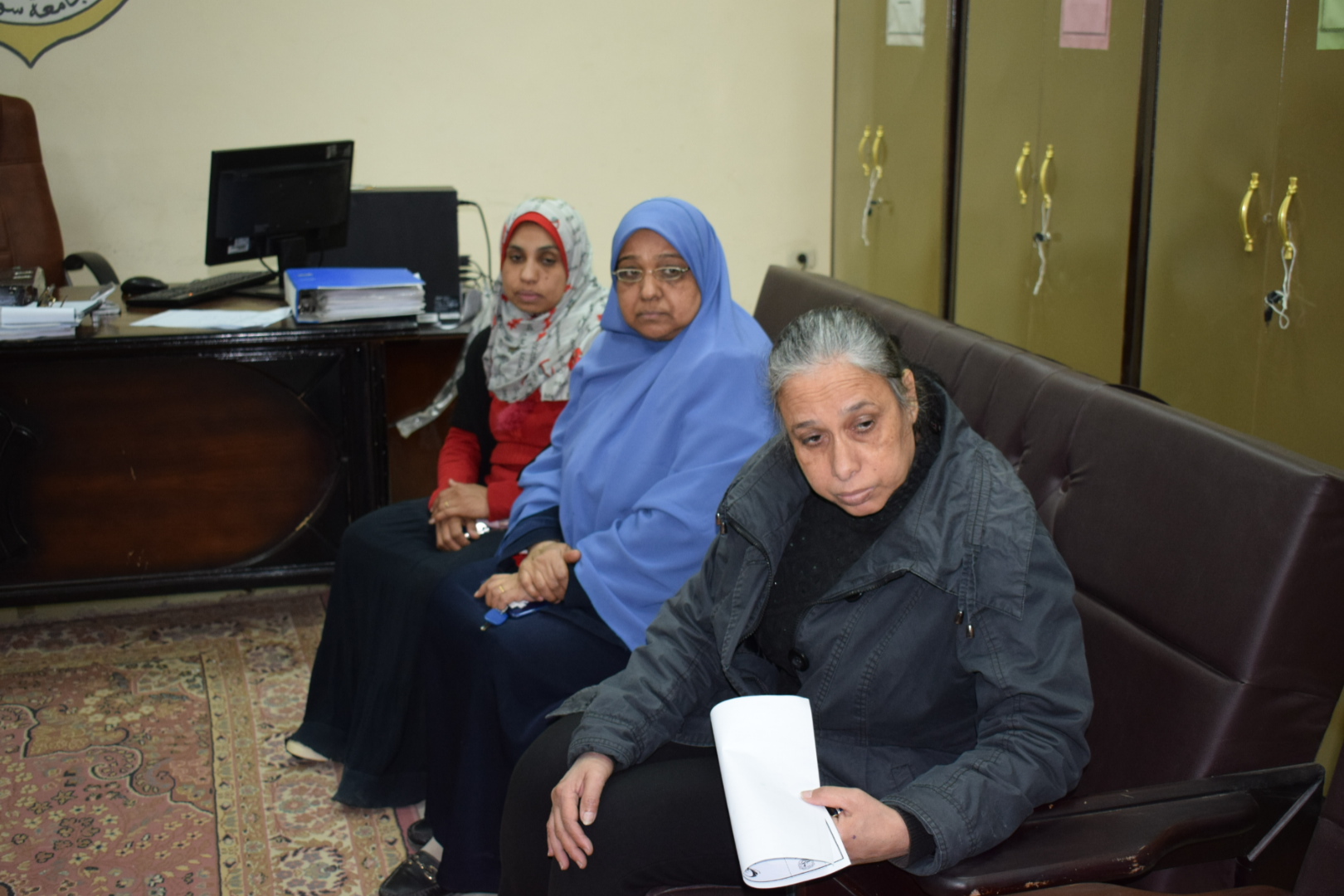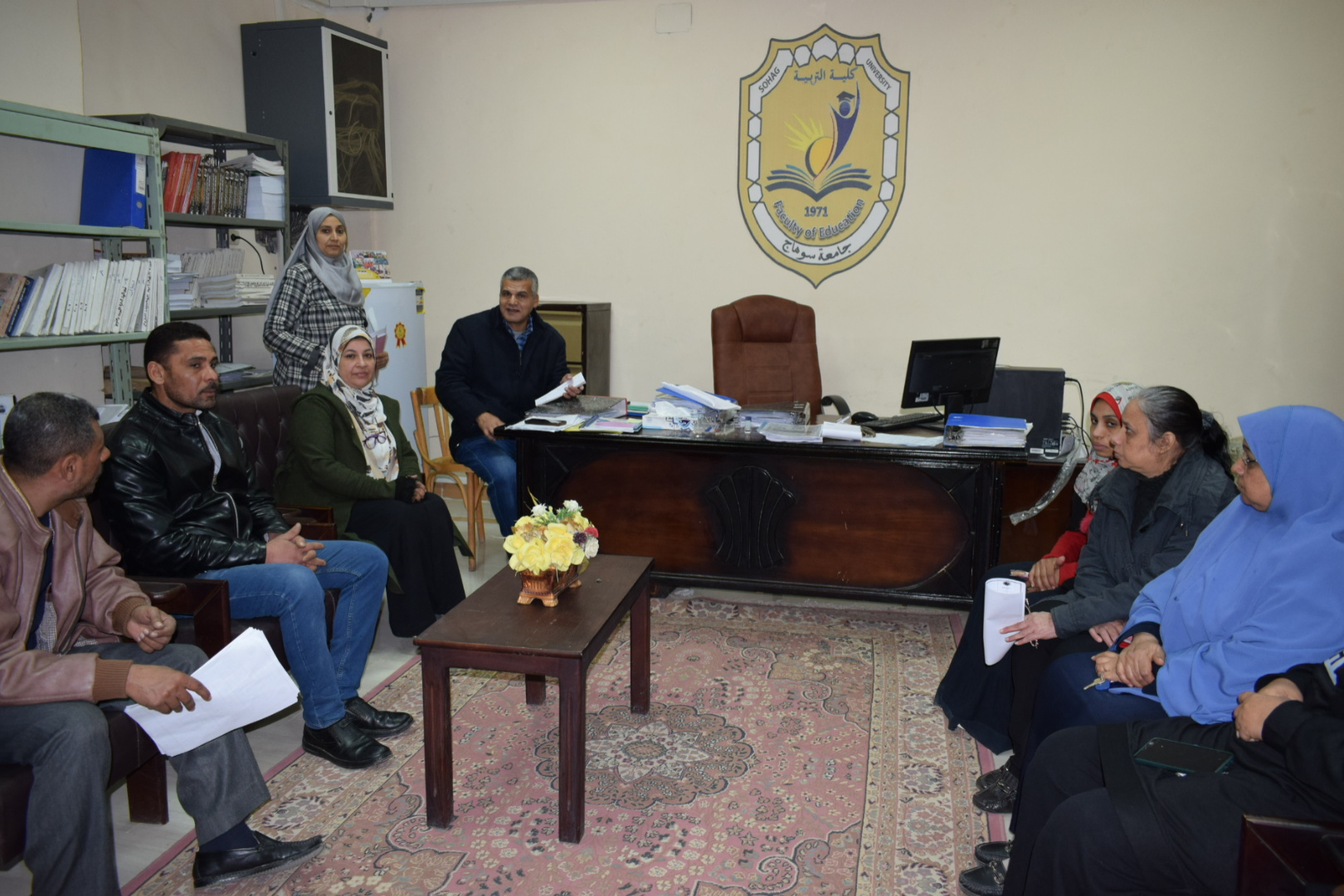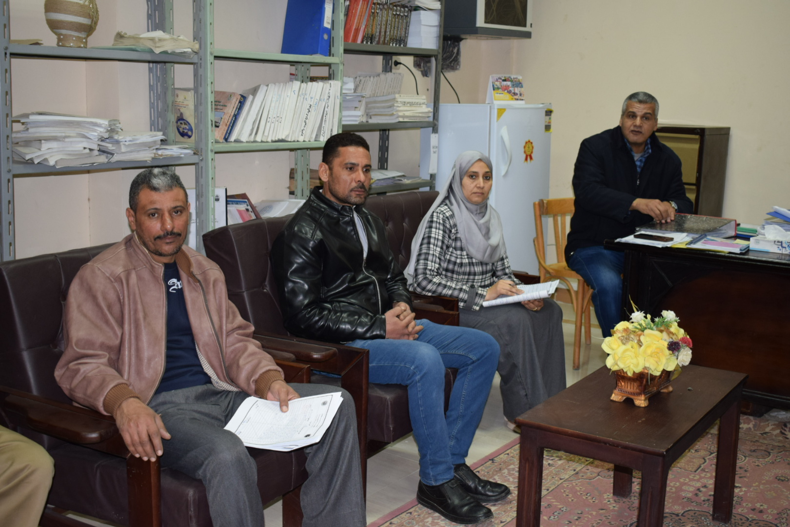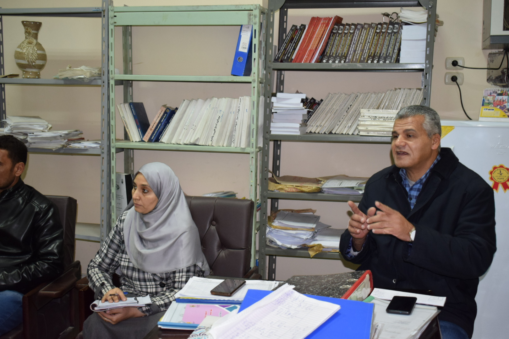 وكذلك مع فنيين المعامل لمتابعة سجلات التردد على المعامل للطلاب واستكمال تجهيزات المعامل للفصل الدراسى الثانى
