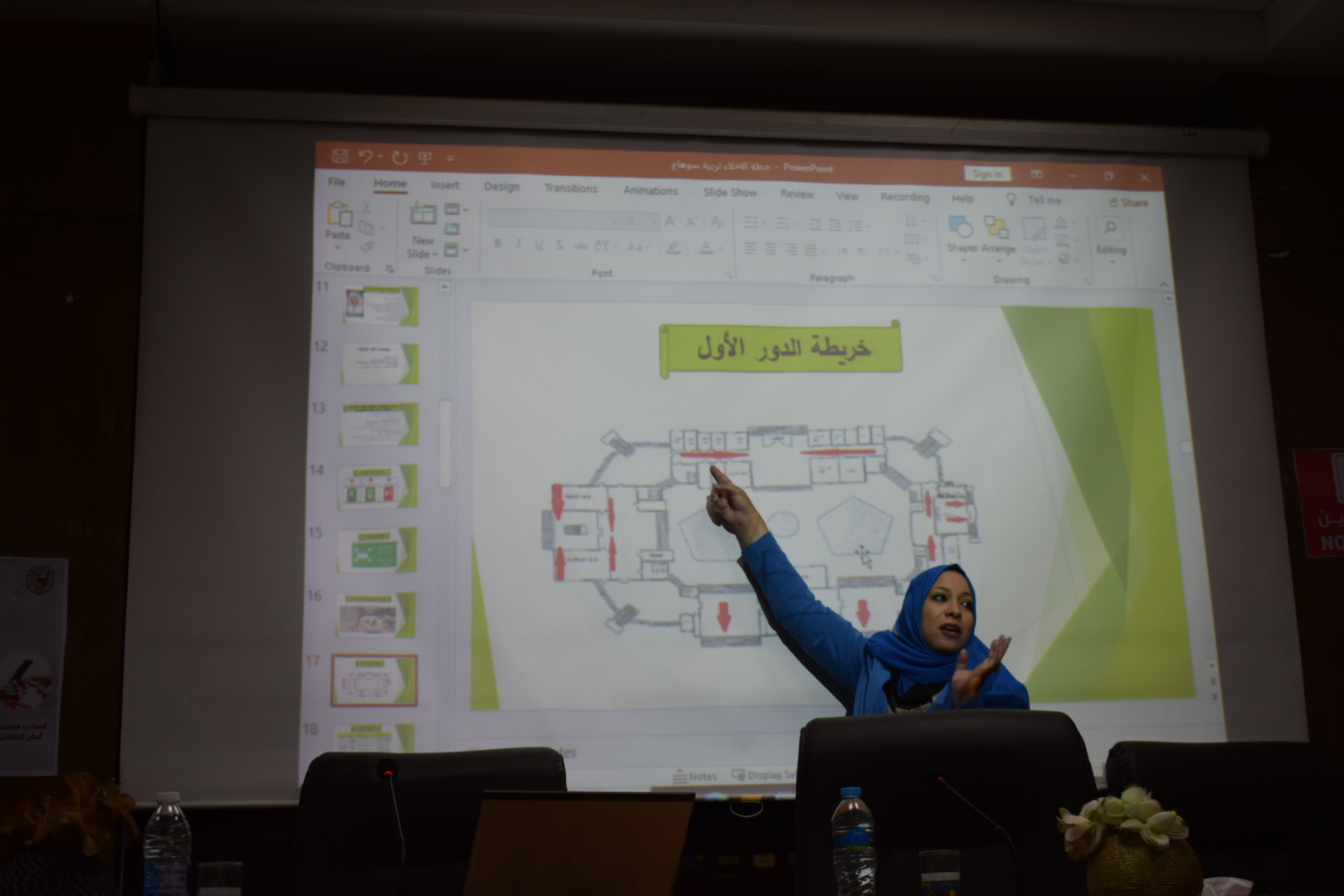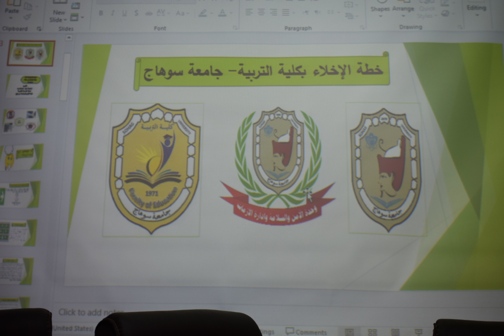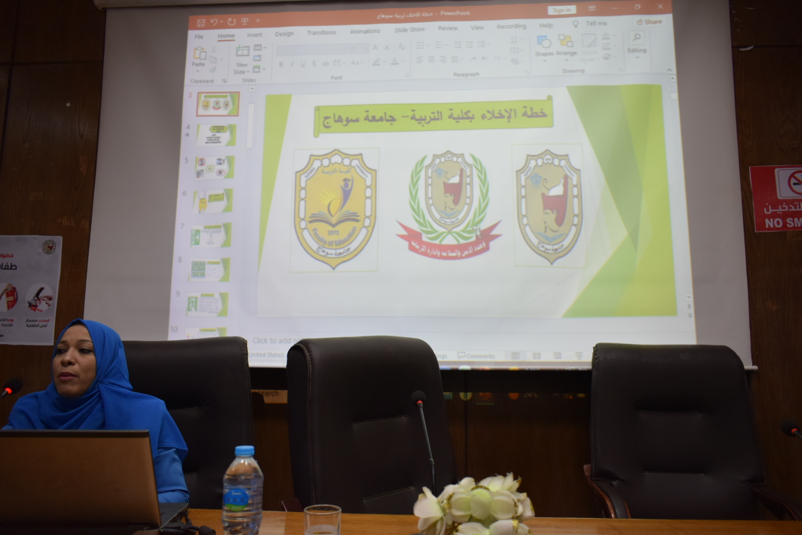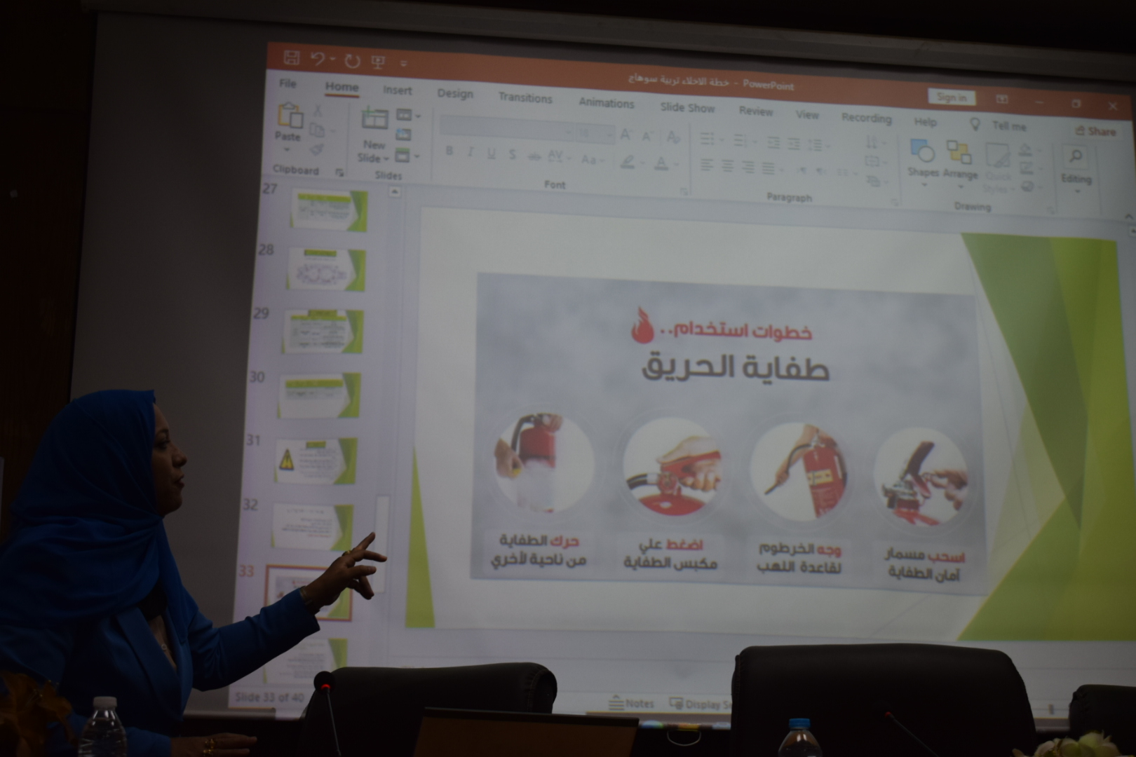 وتناولت الورشة التدريب على كيفية الاخلاء في حالات الطواريء والتعرف على حالات الطوارئ وكيفية الاخلاء وما هي نقاط التجمع الأمن بالكلية وكيفية استخدام طفاية الحريق وانتهت الورشة بعرض عملي لخطة اخلاء المبني.