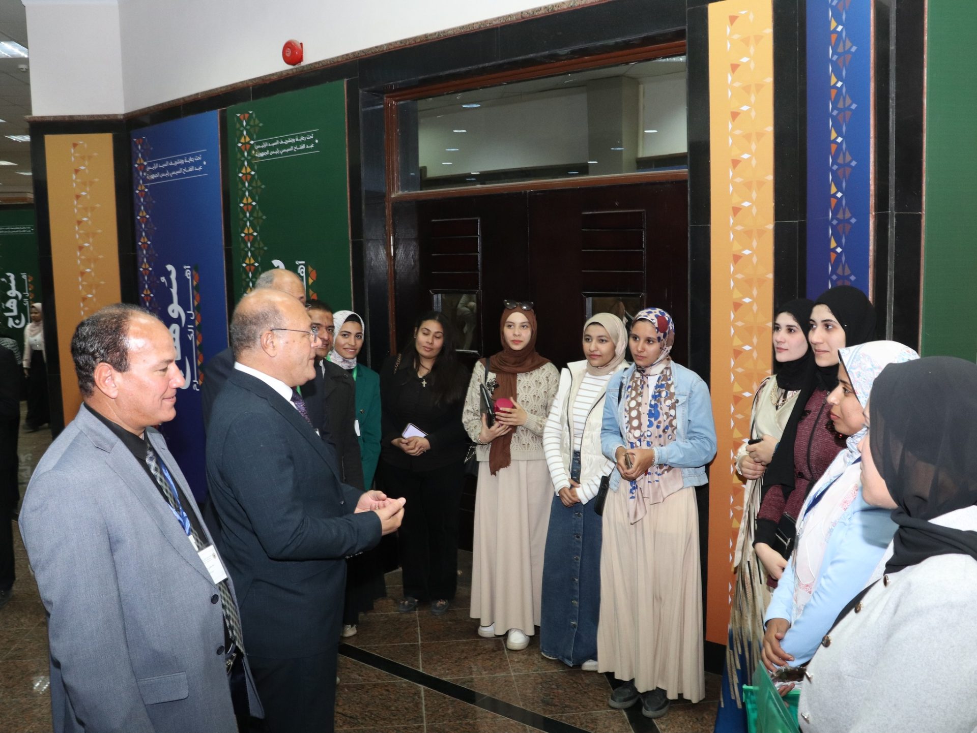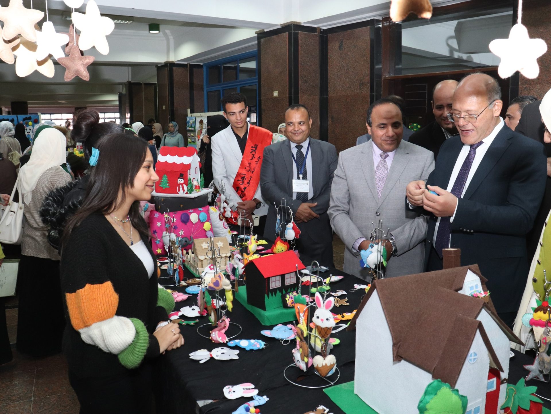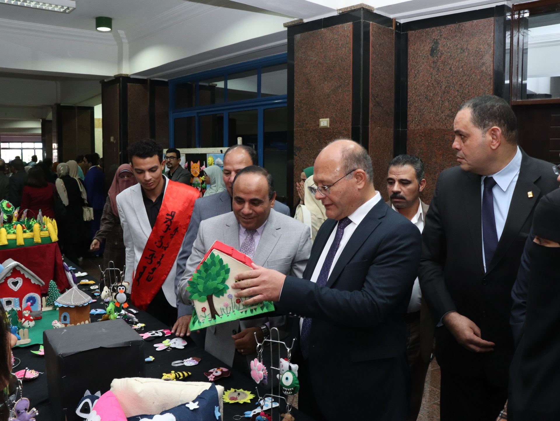 افتتح السيد الأستاذ الدكتور/ حسان النعماني “رئيس جامعة سوهاج” معرض الأعمال الفنية والمشغولات اليدوية التي أنتجتها طالبات الفرقة الأولى والثانية بكلية التربية شعبة الطفولة