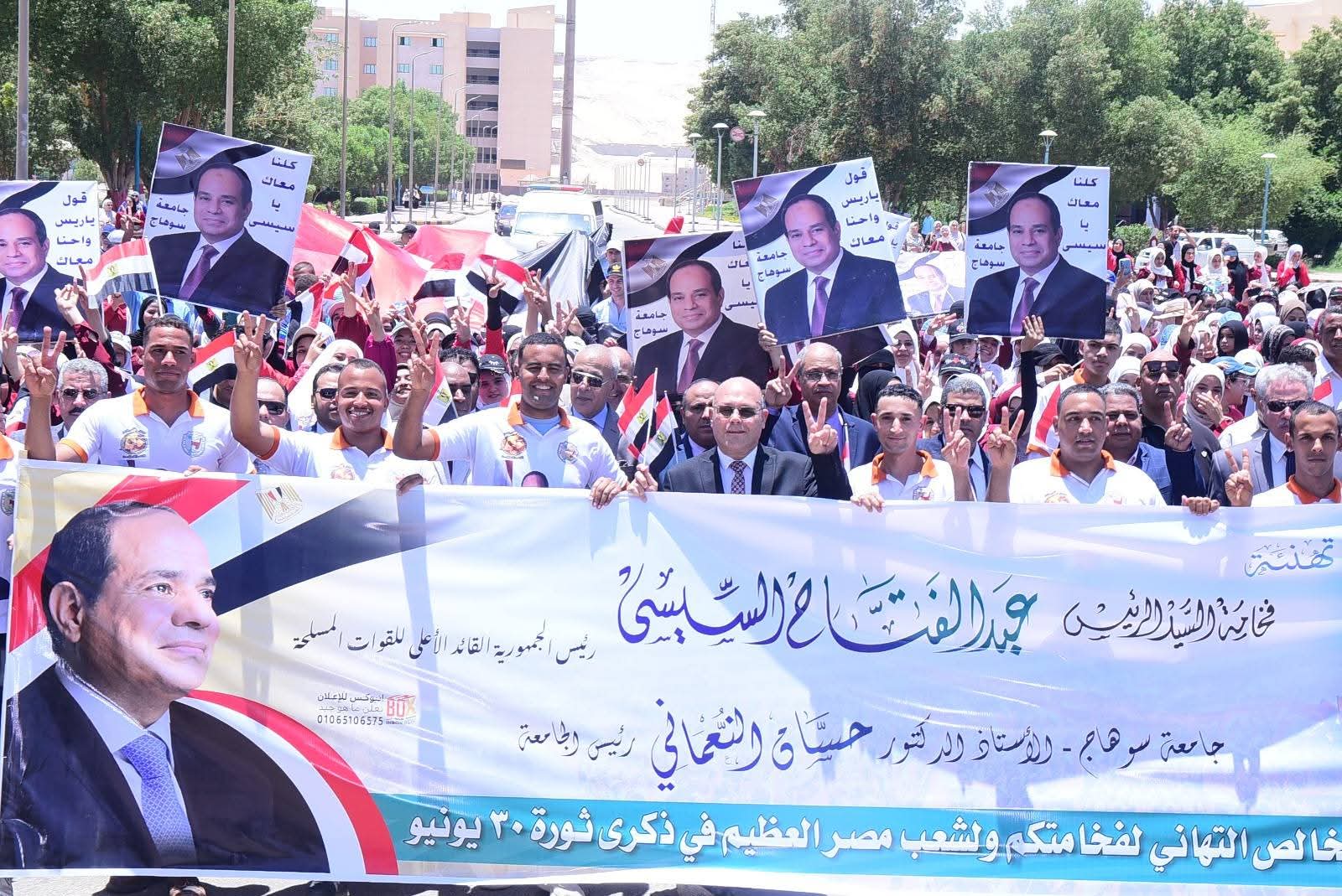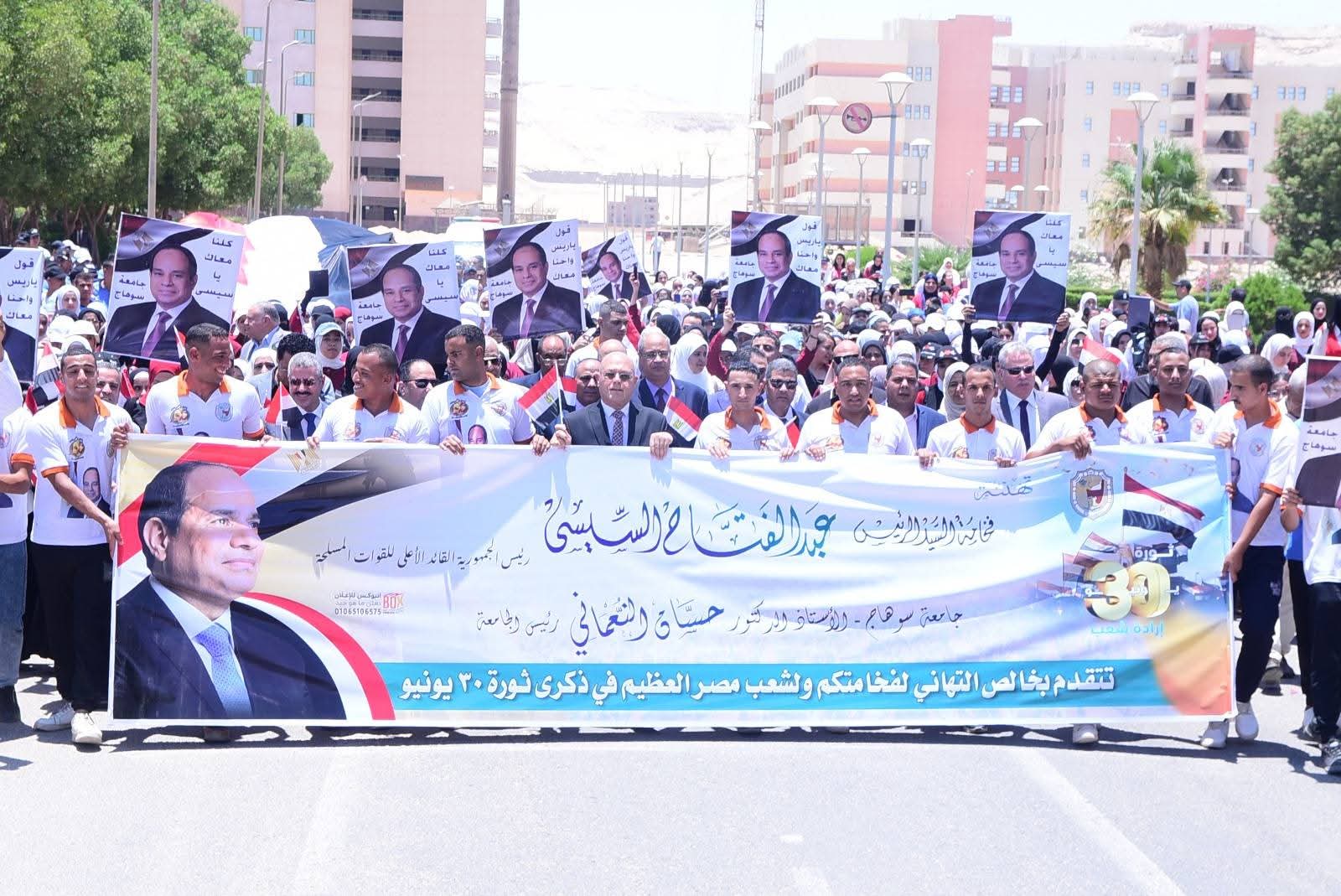 ٣٠٠٠ طالب وطالبة بجامعة سوهاج يجددون الاحتفال بذكرى ثورة ٣٠ يونيو في مسيرة حاشدة تحمل آمالاً جديدة لمستقبل مصر