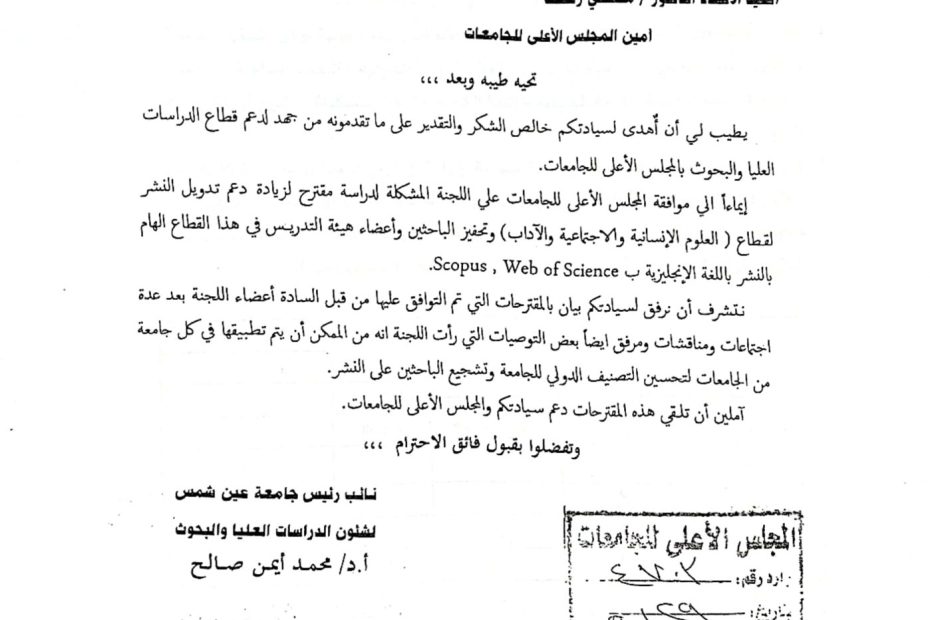 محضر المجلس الأعلي لشئون الدراسات العليا والبحوث