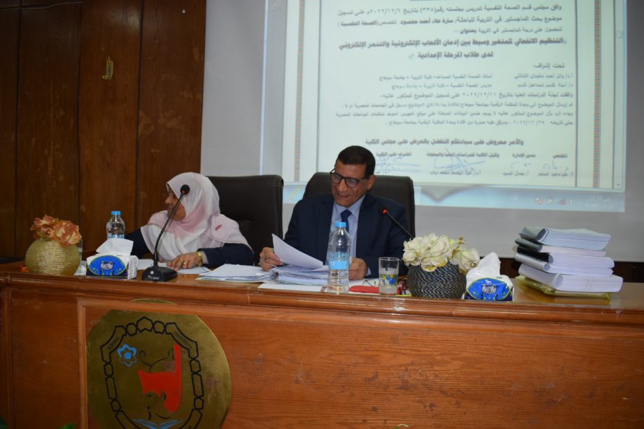 الأستاذ الدكتور/ عماد صومائيل وهبه المشرف علي الكلية يترأس اجتماع مجلس الكلية لشهر ديسمبر، بجلسته رقم (439) وكان من بين القرارات الصادرة عن المجلس: أولًا: تشكيل لجان المناقشة والحكم على رسائل الماجستير والدكتوراة – الموافقة على تشكيل لجان المناقشة… اقرأ المزيد »مجلس الكلية الجلسة رقم (440) بتاريخ 14/2/2023م