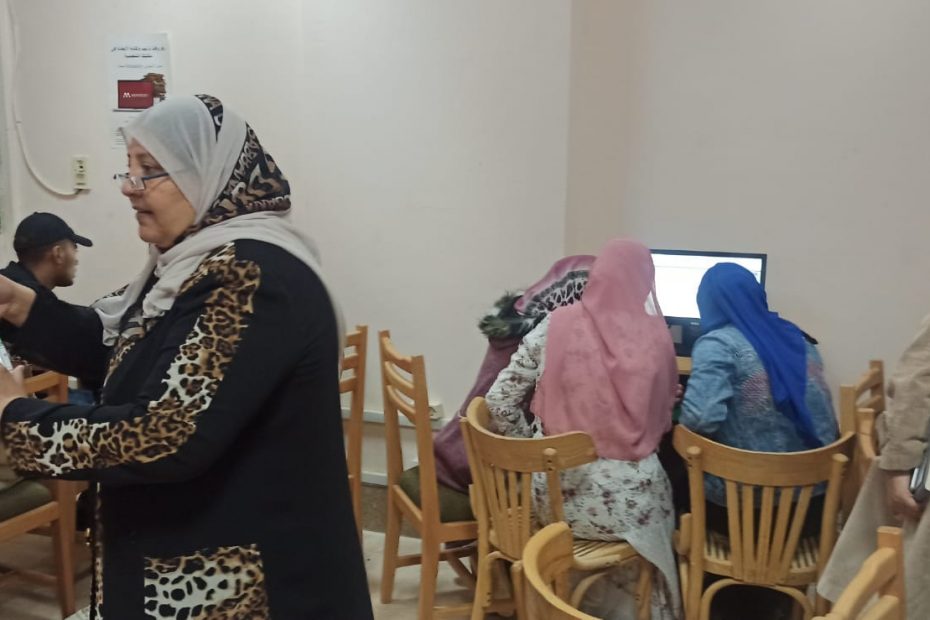 أ/هيام عبدالعزيز (مدير عام مكتبات الجامعة) وفريق الدعم الفني أثناء تدريب الطلاب علي كيفية الفهرسة ورفع الكتب على موقع إتحاد مكتبات الجامعات المصرية