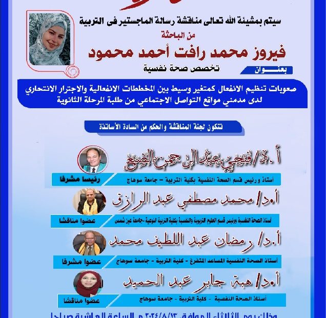 ورشة عمل: الخبرة الميدانية في لائحة الدبلوم العامة المطورة للسيد أ.د/ فتحي عبد الرحمن الضبع تحت رعاية السيد أ.د/ حسين طه “المشرف على عمادة الكلية” تم بفضل الله تعالى البدء في تنفيذ سلسلة ورش عمل الخاصة بوحدة التدريب بالكلية وكانت… اقرأ المزيد »ورشة عمل: الخبرة الميدانية في لائحة الدبلوم العامة المطورة للسيد أ.د/ فتحي عبد الرحمن الضبع
