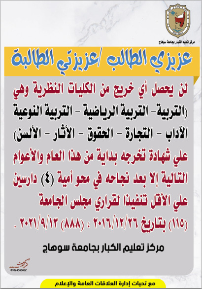اعلان مهم للطلاب المسجلين بالماجستير والدكتوراة لائحة قديمة