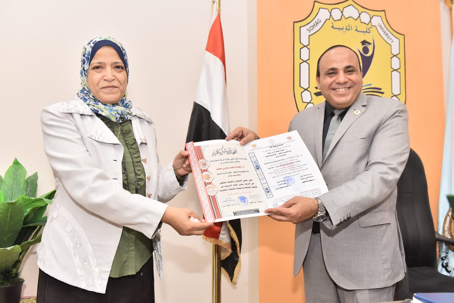 Dr/ Khaled Omran, Dean of the College, honored Prof/Naglaa Mohamed Fares, Professor of Educational Technology, College of Specific Education, South Valley University, for her efforts in supporting Educational Journals.